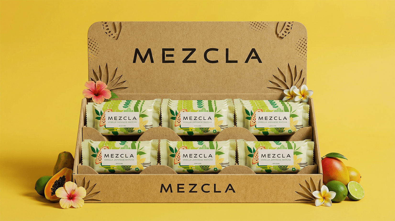 A Global Fusion of Flavor and Tradition Mezcla is crafted with ancient ingredients sourced from around the globe, including Japanese Matcha, Peruvian Chocolate from the Andean Foothills, and other cherished foods. This unique combination delivers a one-of-a-kind consumer experience, blending tradition with innovation. The vibrant packaging celebrates the harmony of these ingredients, coming together to create stunning, visually captivating graphics that reflect Mezcla's story of global connection and exquisite flavor.
